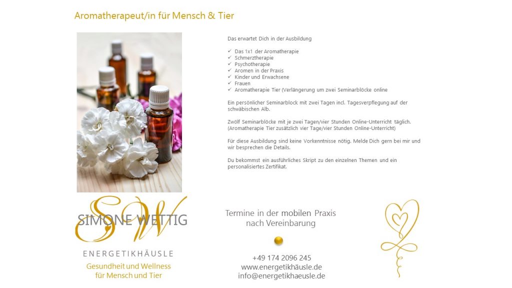 Aromatherapeut/in für Mensch & Tier Name * First Last Deine beste Mailadresse * Deine Nachricht an mich *